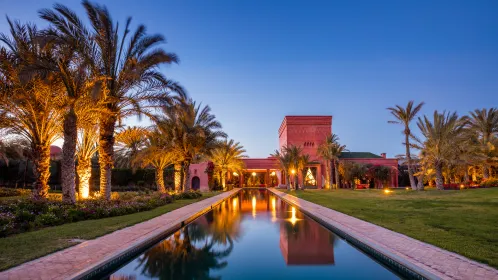La Palmeraie, symbole absolu de l’immobilier luxe Marrakech, propose les plus belles villas de prestige de la ville, parfois transformées en maisons d’hôtes ou réservées à un usage privé haut de gamme.